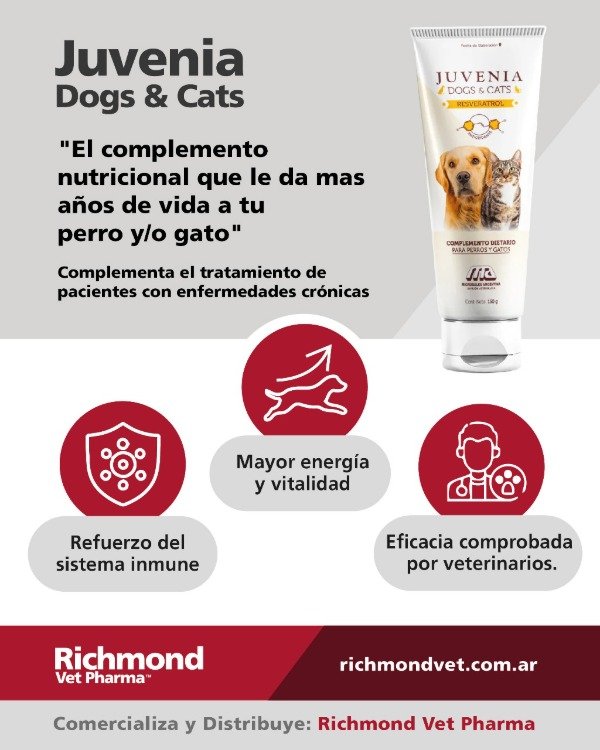 Formulado en consistencia de SuperGel, el Resveratrol presente en cada sobre de JUVENIA DOGS ayuda a prevenir y contrarrestar afecciones renales, artritis, disfunciones cardiovasculares y demás dolencias crónicas no transmisibles, que tienen como base la hiperoxidación de las células.